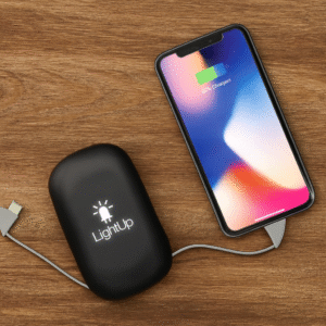 Eco-friendly power bank designed for modern lifestyles, combining style, convenience, and sustainability. Delivering 15W wireless charging and featuring a built-in cable, it keeps your smartphone powered effortlessly at home, work, or on the go. Its 5000mAh battery ensures reliable energy, while the wallet-style design doubles as a handy phone stand. Crafted from recycled PU and presented in a premium black box, this multifunctional charger makes an ideal gift for tech enthusiasts who value practicality and green design.