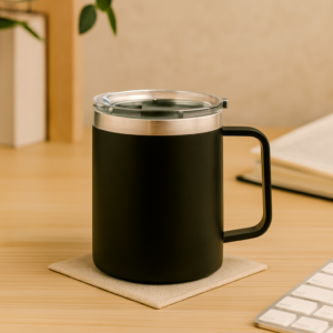 Recycled stainless steel mug.
