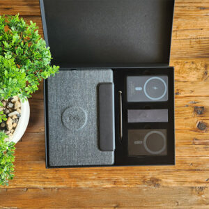 Tech gift set. Wireless notebook, power bank, mousepad & card holder.