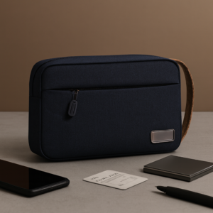 Travel Pouch with leather handle.