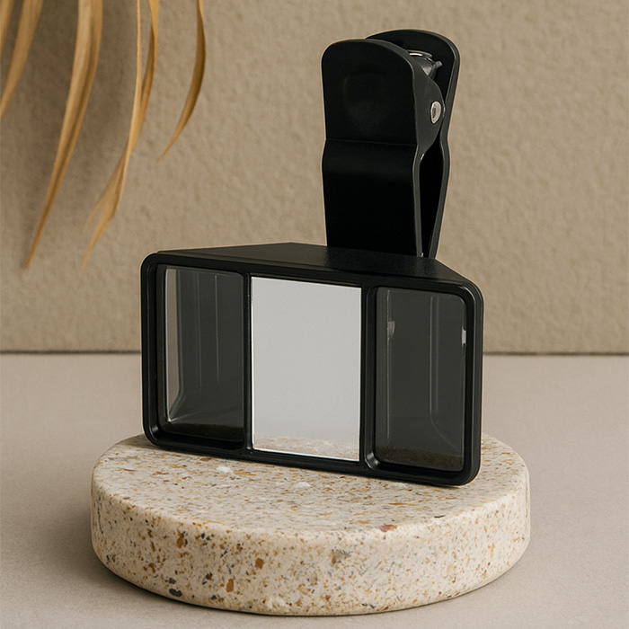 Universal 3D lens that is compatible with all mobile phones. Place the clip on your mobile phone to create 3D photographs and videos. ABS material with PU pad to protect your phone.