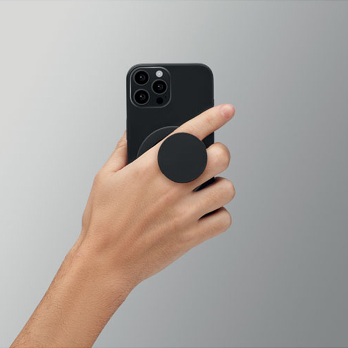 Keep your phone secure and accessible with this sleek magnetic phone holder and stand, made from recycled ABS for a more sustainable choice. Designed for versatility, it features a strong magnetic hold and includes an extra metal ring to support non-magnetic devices. Perfect for desks, nightstands, or on the go, it offers stable hands-free viewing in both portrait and landscape modes. Compact and stylish, it’s an eco-conscious solution for everyday convenience and functionality.
