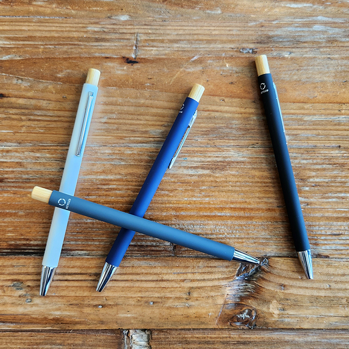 Eco-friendly push ball pen is crafted from recycled aluminium, making it a sustainable choice for your writing needs. Its sleek silver tip and clip add a touch of sophistication, while the blue ink flows smoothly for a consistent writing experience. Designed with both style and the environment in mind, this pen is perfect for everyday use or as a thoughtful gift. Make a sustainable statement with every word you write.