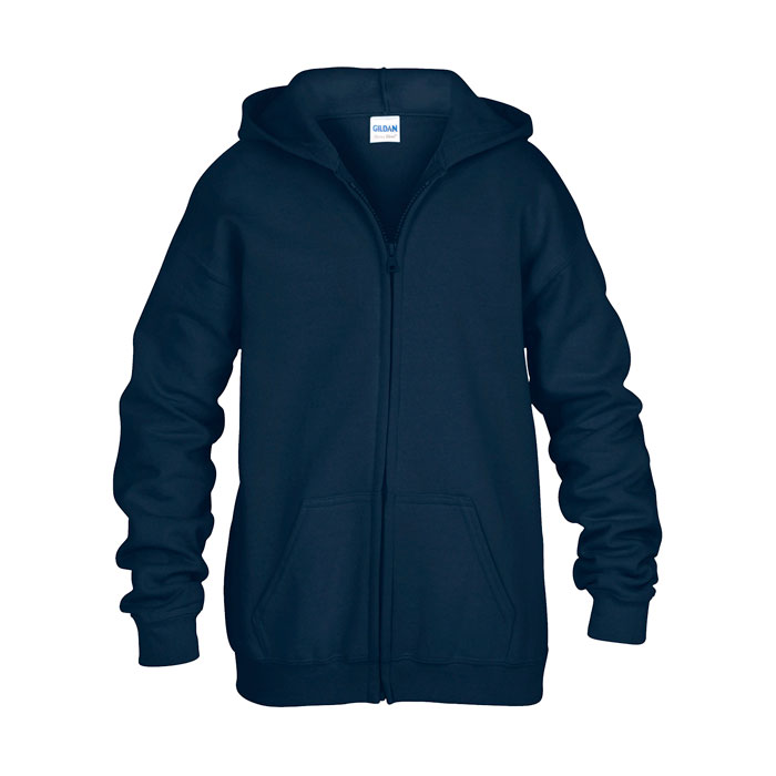 270 g/m2 (White: 255 g/m2). ·50% cotton, 50% polyester. Basic hood. Set- in sleeves. Full zip. Patch pockets with double-needle stitching. Elastic rib trim to sleeves and bottom hem. Tubular fabric. XS = (4-5) S = (6-7) M = (8-9) L = (10-12) XL = (13-14)