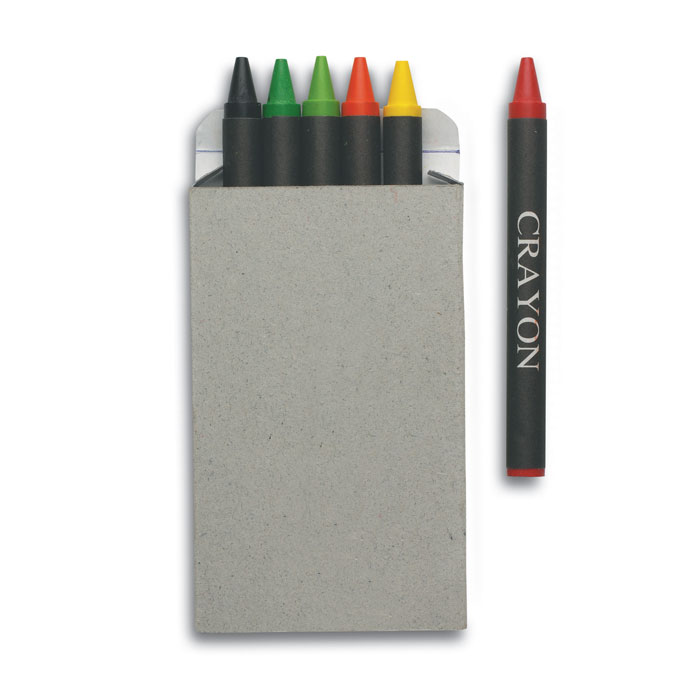 Set of 6 wax crayons in natural carton box. Non-toxic.