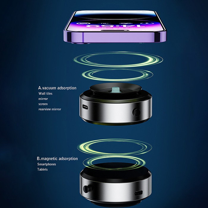 Secure your phone with our Magnetic Phone Holder, featuring advanced mechanical suction technology and vacuum absorption. Perfect for mirrors, tiles, screens, and any flat surface, this holder ensures a stable and reliable grip. The strong magnets keep your device firmly in place, offering peace of mind wherever you mount it. Whether in the gym or in the car, this hands-free use versatile holder combines convenience with durability, making it an essential accessory for your everyday needs.