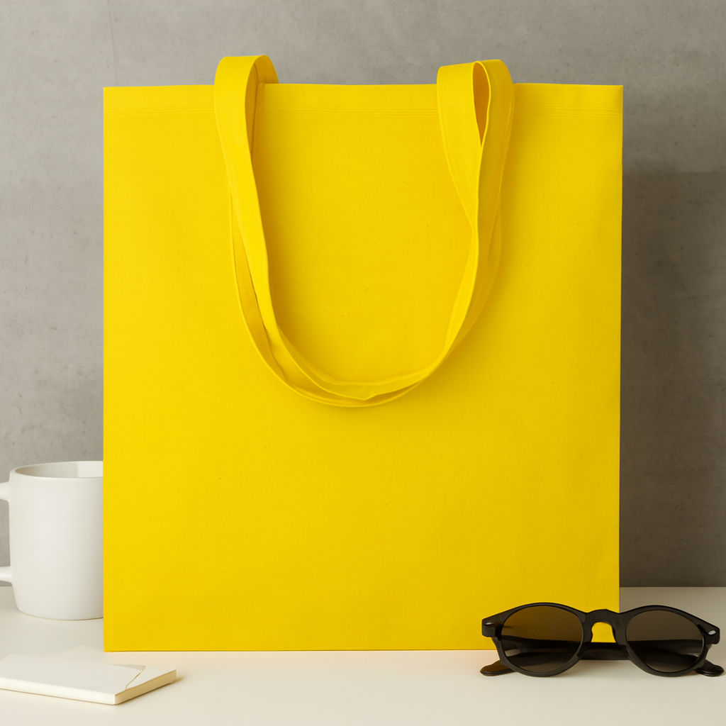 Cotton shopping bag with long handles and gusset. 140 gr/m².
