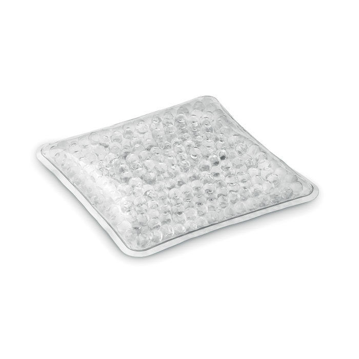 Hot and cold pack with gel beats inside in PVC transparent bag.
