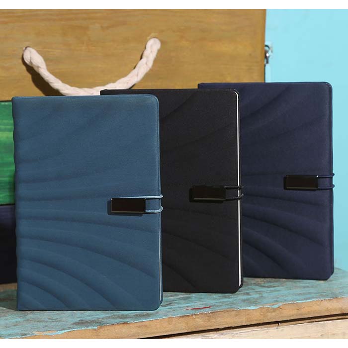 Attractive A5 size notebook with wavy design produced with compressed foam technique. 88 sheets of ruled pages and 8 blank sheets.