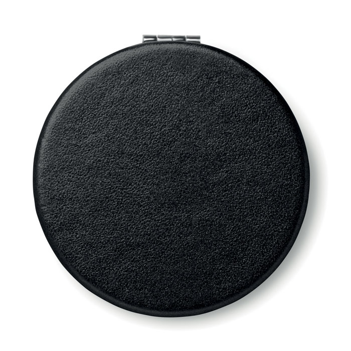 Double mirror with magnetic closure in round shape with PU cover.