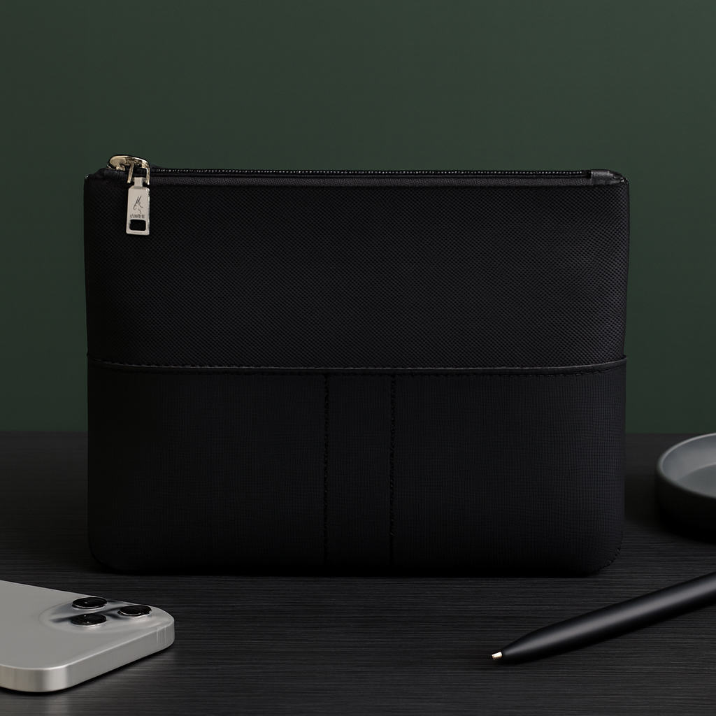 Stay organized wherever you go with the Copeland compact multi-pocket pouch, designed for both style and practicality. Crafted from durable high-quality fabric with reinforced stitching, this sleek pouch features a secure zipper compartment, a dedicated pen pocket, and two card slots to keep essentials neatly in place. Perfect for professionals, students, and travellers, it fits effortlessly into handbags, backpacks, or desks. With a modern design and protective packaging, the Copeland pouch is ideal for everyday use or gifting.