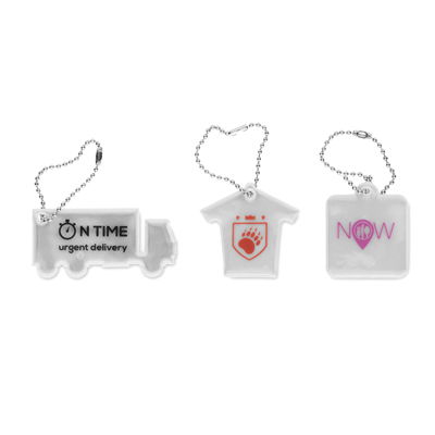 Custom shape, reflective safety keychain in silver or yellow AGR reflective foil