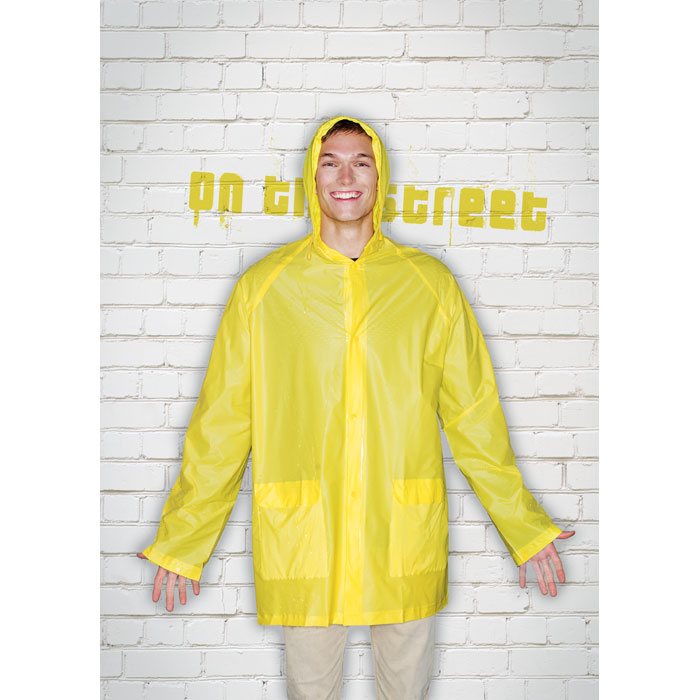 PVC raincoat with hood. Press-stud fastening.