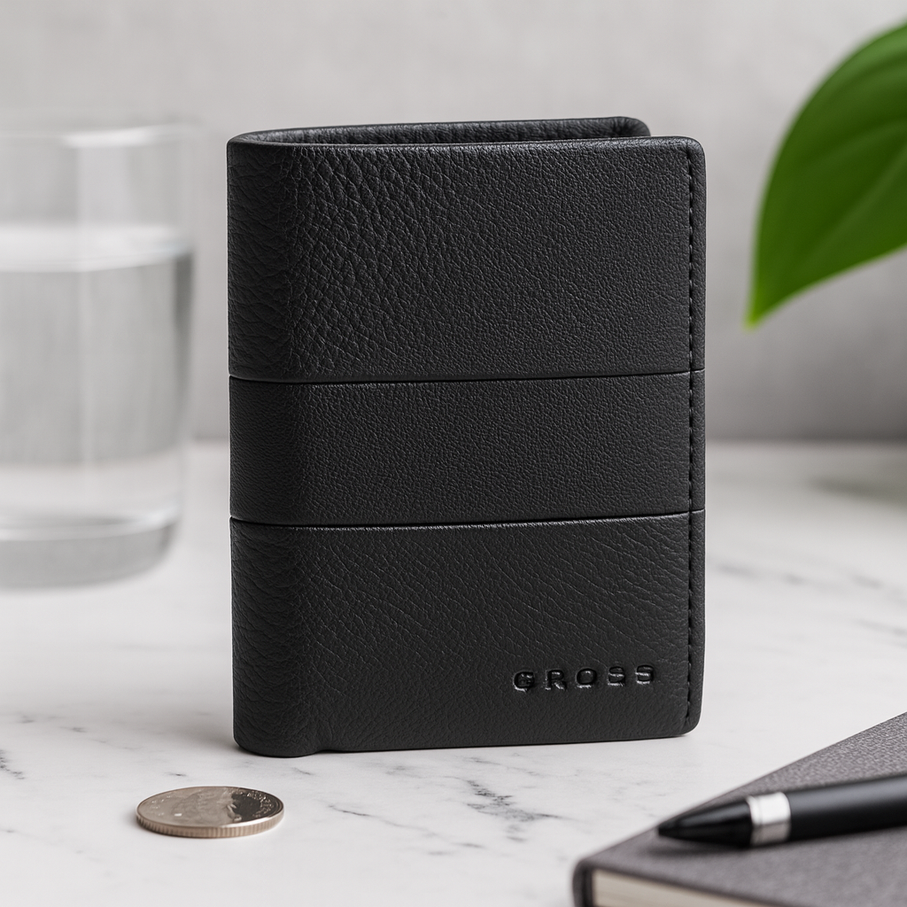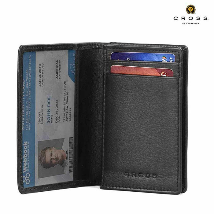 Simple and elegant this genuine leather card holder by Cross® is presented in a Cross® gift box. Branded with debossed logo.