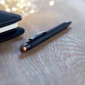 Experience the elegance of Eira, a precision-crafted pen with a frost-coated metal barrel for a premium look and feel. Its minimalist design, frozen-look accents, and ergonomic grip blend style with comfort. Equipped with a high-quality tungsten carbide ball in a brass tip, it delivers smooth, consistent ink flow, resistant to smudging, fading, and water. An integrated stylus ensures seamless use on phones, tablets, and touchscreens, making Eira the perfect fusion of luxury, functionality, and lasting performance.