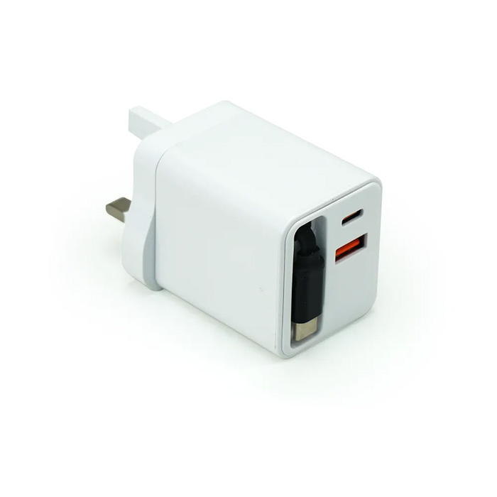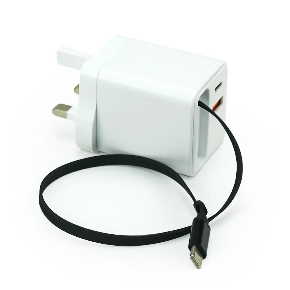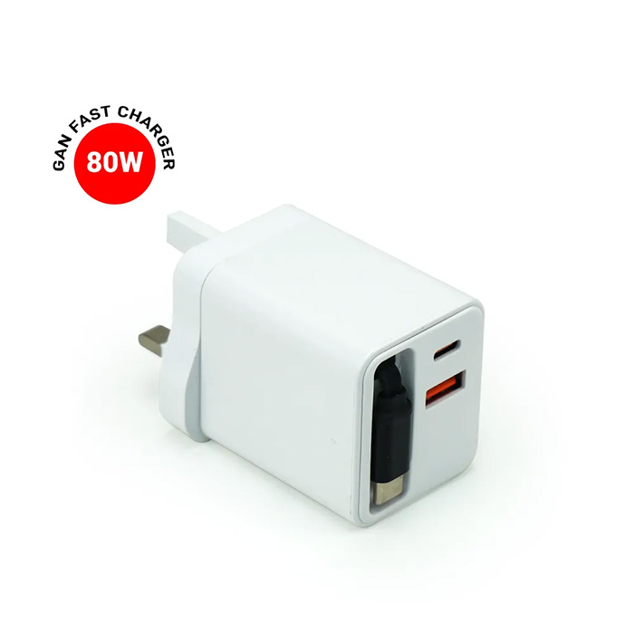 80W fast charger combines ABS durability with advanced gallium nitride efficiency for powerful, stable charging. It features a built-in 64cm retractable Type-C cable plus dual USB-C and USB outputs for versatile device support. With 110–240V global input and intelligent power distribution, it delivers reliable charging through C1 and C2 ports. Finished in sleek white and packaged in a premium black carton box, it’s ideal for travel and everyday use at home or work.