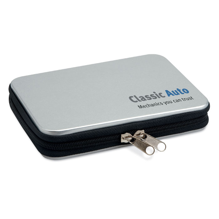 Tool set presented in aluminium case containing 1 nose plier, 1 cutting plier, 1 socket screwdriver, 1 extender, 10 pieces bit set, 1 tweezers and 6 precision screwdriver.
