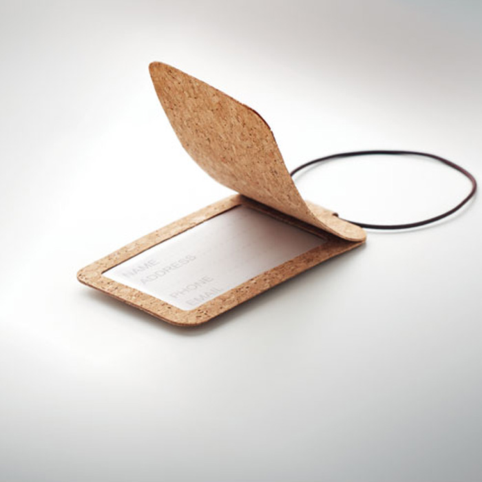 Cork luggage tag. Never lose your bags again at the airport. This unique cork luggage tag will stand out from the others. Cork is a sustainable material, so by using this you are also helping the environment.