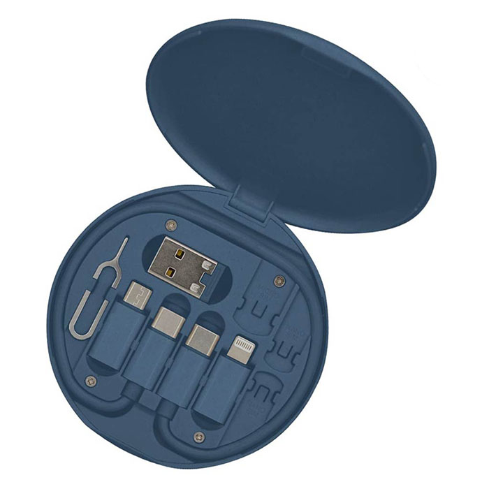 WU-TECH-3092 Multicable Set includes Type C, Lightning, micro-USB, USB cables, an ejector pin, and storage slots for micro, nano, and TF SIM cards.