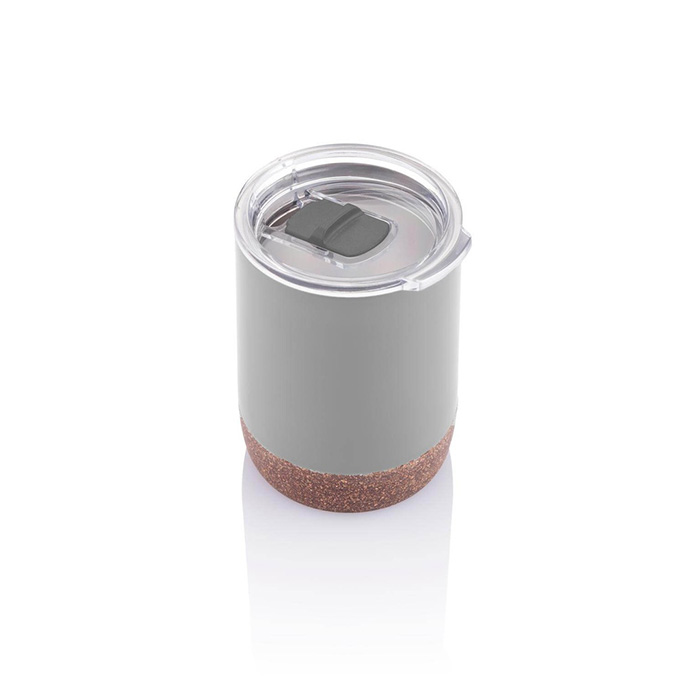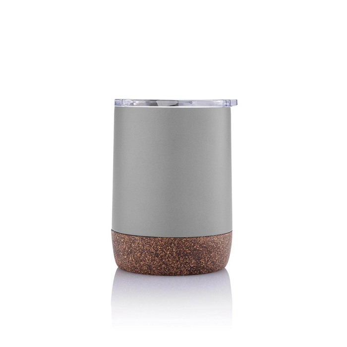 Vacuum insulated cork coffee mug with unique cork detail. Stainless Steel double wall composition. Keeps your drinks hot for up to 5h and cold up to 15h. Fits most coffee machines. Content: 180ml.