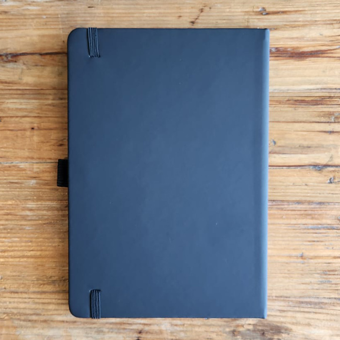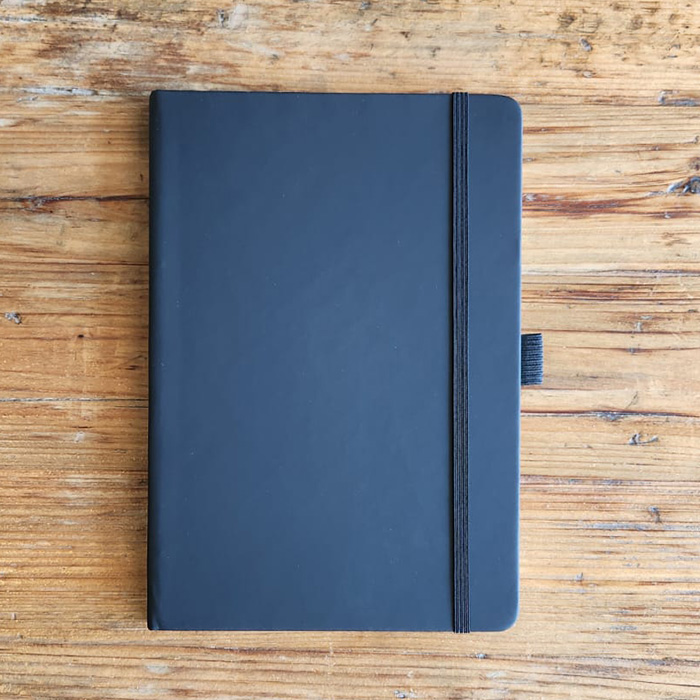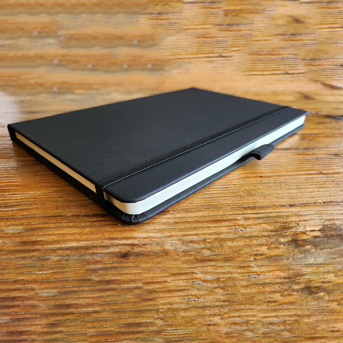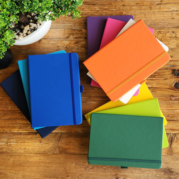Elevate your note-taking experience with this sleek A5-sized notebook, featuring a built-in pen holder for added convenience. Crafted from durable PU leather, it combines style with practicality, perfect for everyday use. The notebook includes 96 sheets of high-quality 70 GSM ruled paper, providing a smooth writing surface ideal for jotting down ideas, notes, or sketches. Its compact size makes it easy to carry, making it a versatile companion for work, school, or personal use. A great promotional giveaway item.