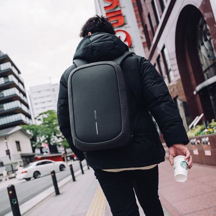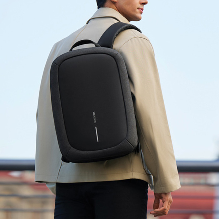 Introducing Hyba, a backpack that masterfully combines contemporary design with superior security. Its anti-theft construction and self-locking metal zipper puller ensure your belongings are well-protected. Crafted from lightweight yet durable materials, this backpack features a water-repellent exterior and waterproof zippers for robust weather resistance.Inside, smart organizational features provide easy access to your essentials, while a discreet RFID-protected rear pocket and hidden tracking device pocket enhance your security and convenience. Perfect for the modern adventurer, Hyba merges style with advanced protection. Made from R-pet fabric and featuring the AWARE™ tracer, it guarantees the use of genuine recycled materials, containing 14% recycled content. Registered design®.