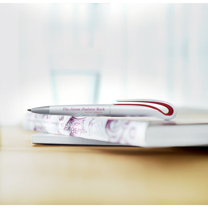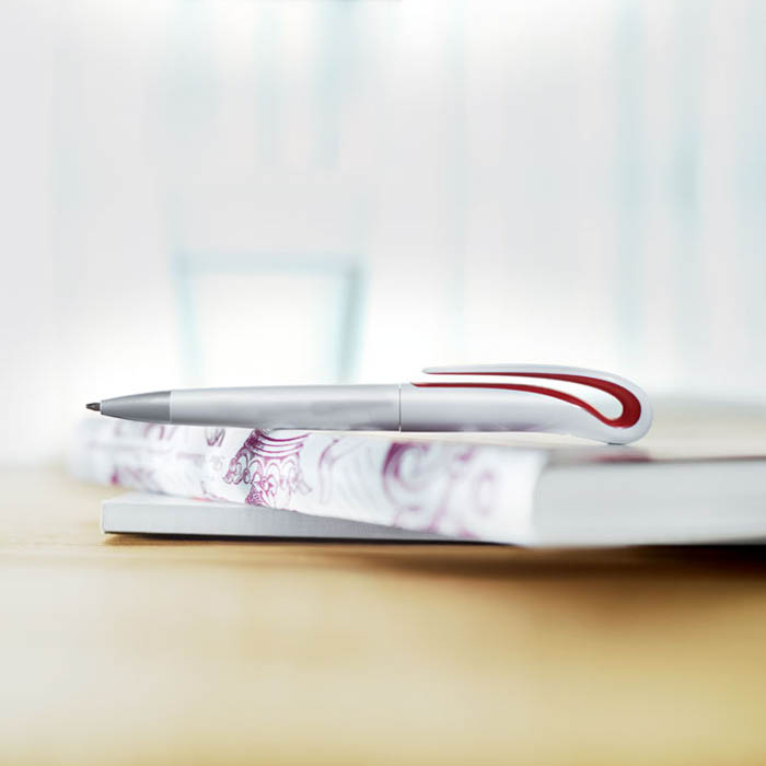 Twist action ball pen in ABS with blue ink.