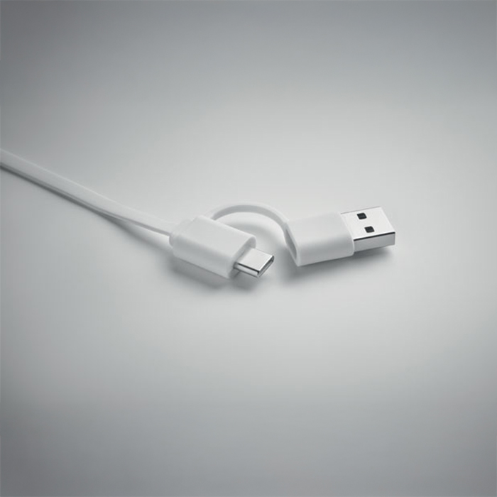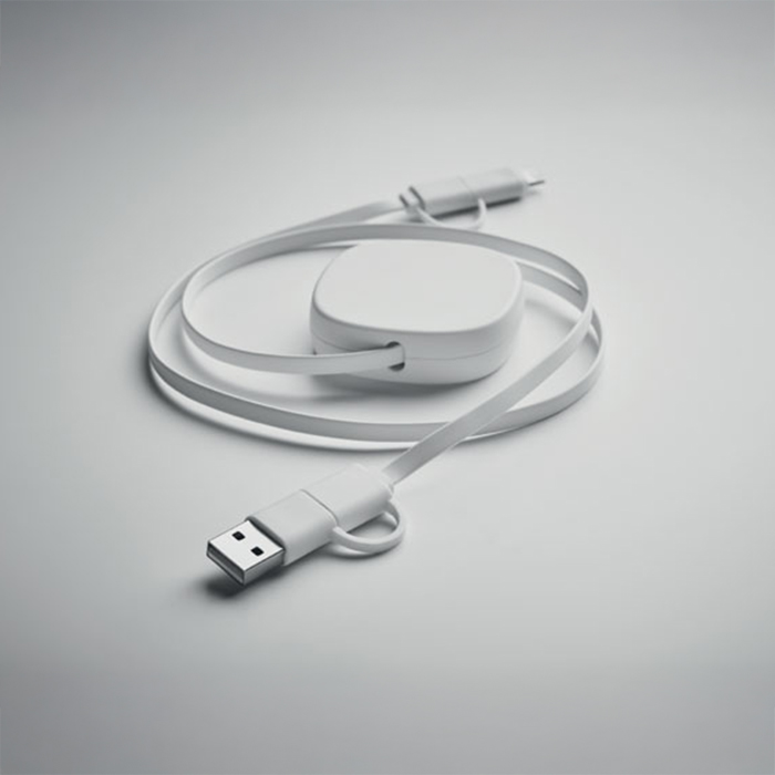Compact and eco-friendly, this 60W retractable charging cable is housed in durable recycled ABS casing. It features a versatile input with 2-in-1 Type-C and Type-A compatibility, and an output with a 2-in-1 Type-C and micro-B pin. The 80 cm cable length offers optimal reach, while the retractable design keeps it neat and tangle-free. Perfect for fast, efficient charging on the go, this cable combines sustainability and functionality in one sleek solution.