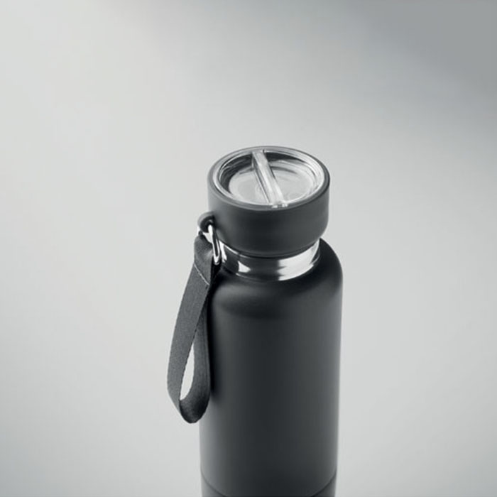 This 500 ml double wall insulated bottle combines sustainability with convenience, crafted from 90% recycled stainless steel and 10% stainless steel. Its leak-free design features a PP lid and an integrated strap handle, plus an additional 70 cm long strap for easy carrying. The bottom doubles as a cup, making it perfect for on-the-go hydration. Durable, eco-friendly, and stylish, this bottle keeps your drinks at the ideal temperature while offering practical portability for everyday adventures.