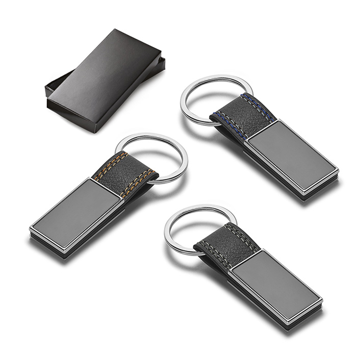 Premium looking metal keyring with faux leather strap. Comes in a gift box 2.2 x 6.5 cm