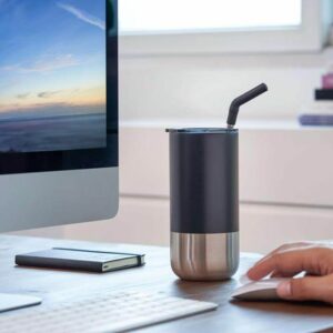 Crafted from durable stainless steel, this 500ml (17 oz) tumbler keeps beverages hot or cold for extended periods. Its sleek matte finish pairs with a transparent flip-top lid for easy sipping, plus a metal straw with a soft silicone tip for added comfort. It fits effortlessly in bags and cup holders. Available in Black, Brown, and White, each tumbler comes packaged in a white glossy carton box with a one-color imprint.