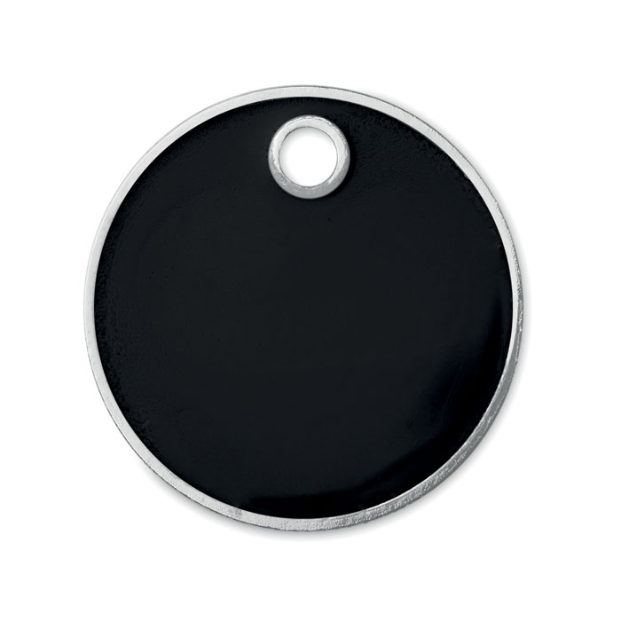Metal keyring trolley euro token. With imitation enamel coating on the front side. Size Ø23,2×2,1 mm thickness.