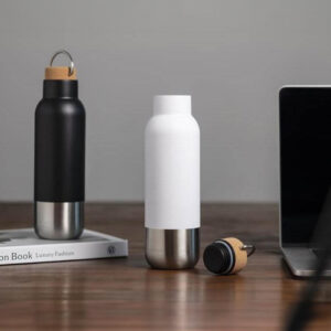 It can’t get more urban and swanky when it comes to drinkware. Kyrtos is an embodiment of sustainability and stylish hydration. This geometrically inspired flask combines an attractive double-wall stainless steel body with an ergonomic rotating handle, all crafted from recycled stainless steel. With the capacity to maintain temperatures for up to 18 hours, it’s equally adept at keeping your beverages piping hot or refreshingly cold. A mirror finish effect of laser engraving on the lid adds a touch of posh branding to the bottle. Holding 500 ml, it’s the perfect companion for environmentally conscious professionals and a fitting choice for eco-friendly corporate gifting or event promotions.