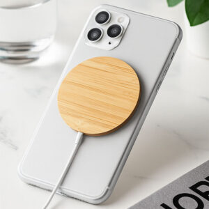 Charge your devices quickly and sustainably with the Bamboo Wireless Charger. Offering 15W fast charging, this eco-friendly charger is crafted from natural bamboo, blending technology with nature. Its sleek design includes an LED logo that lights up when in use, adding a modern touch to your workspace. Compatible with all Qi-enabled devices, this charger not only boosts your device’s battery but also enhances your space with an eco-conscious style. A perfect balance of speed, style, and sustainability.