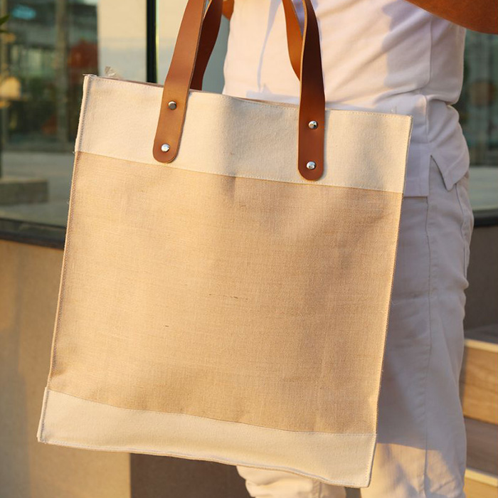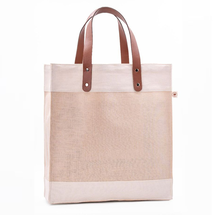 Stylish juco tote bag is crafted from eco-friendly natural juco fabric and features elegant brown PU leather handles for a sophisticated look. Designed with functionality in mind, it includes a convenient inside pocket for easy access to your essentials. Durable and versatile, this bag is perfect for daily use or casual outings, offering a spacious interior to carry your belongings. A sustainable choice that blends fashion and practicality seamlessly.