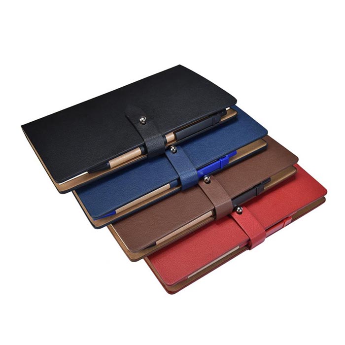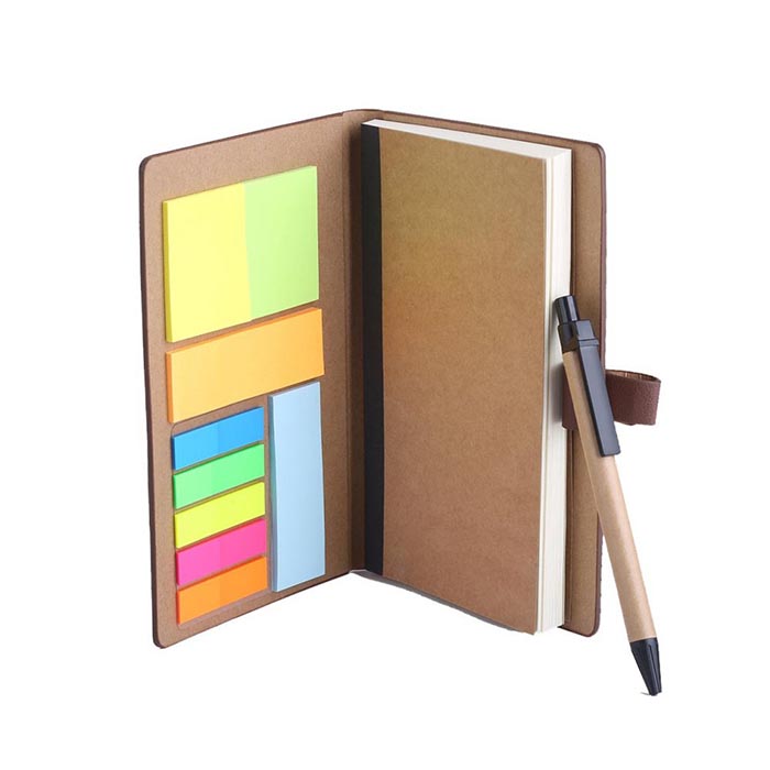 Mini size notepad with premium grade PU cover and strap closure. Consists 70 sheet recycled eco friendly notebook with pen and colourful sticky notes.