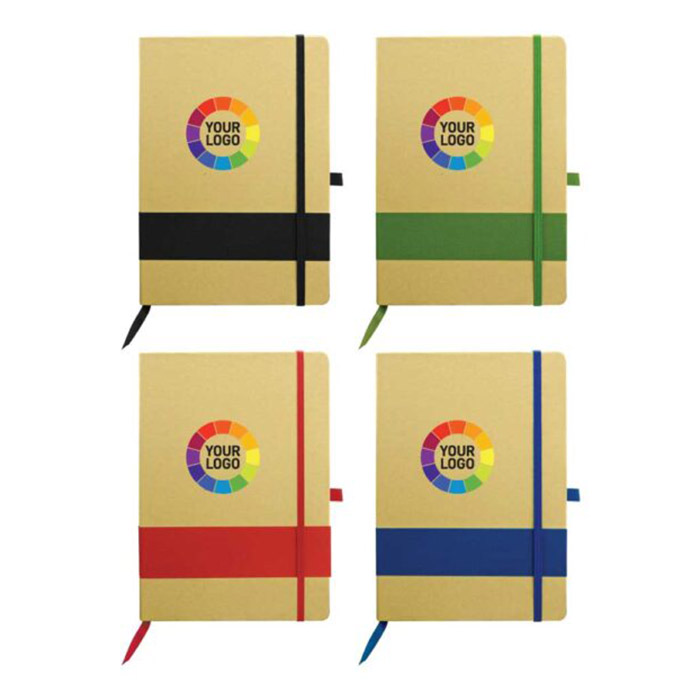 A good friend of nature, Niwesn – A5 eco-friendly notebooks feature a convenient pen holder, a bookmark, and an elastic band closure. Lightweight and compact this book comes in 4 basic colors, adding a great choice to match your colour pallets. Crafted from recycled light brown hardboard material, the book exudes a natural charm. Its matching pen loop, elastic strap, and bookmark enhance its elegance. Ideal for both note-taking and organization, it offers great brand visibility.