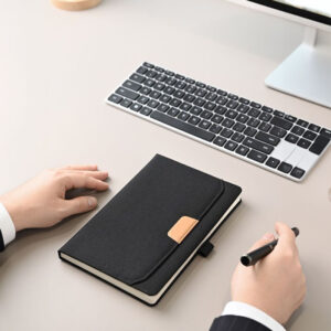 Premium A5 hardcover notebook combines durability and functionality, making it ideal for everyday use or gifting. Featuring 288 cream-white 80gsm ruled pages, it offers ample space for notes, journaling, or planning. Thoughtful details include a sturdy hardcover, pen holder, elastic closure, ribbon bookmark, and an endpaper pocket for extra storage. Its expanded page count ensures long-lasting use, while the color-matched paper sleeve adds a polished, stylish touch for protection and presentation.