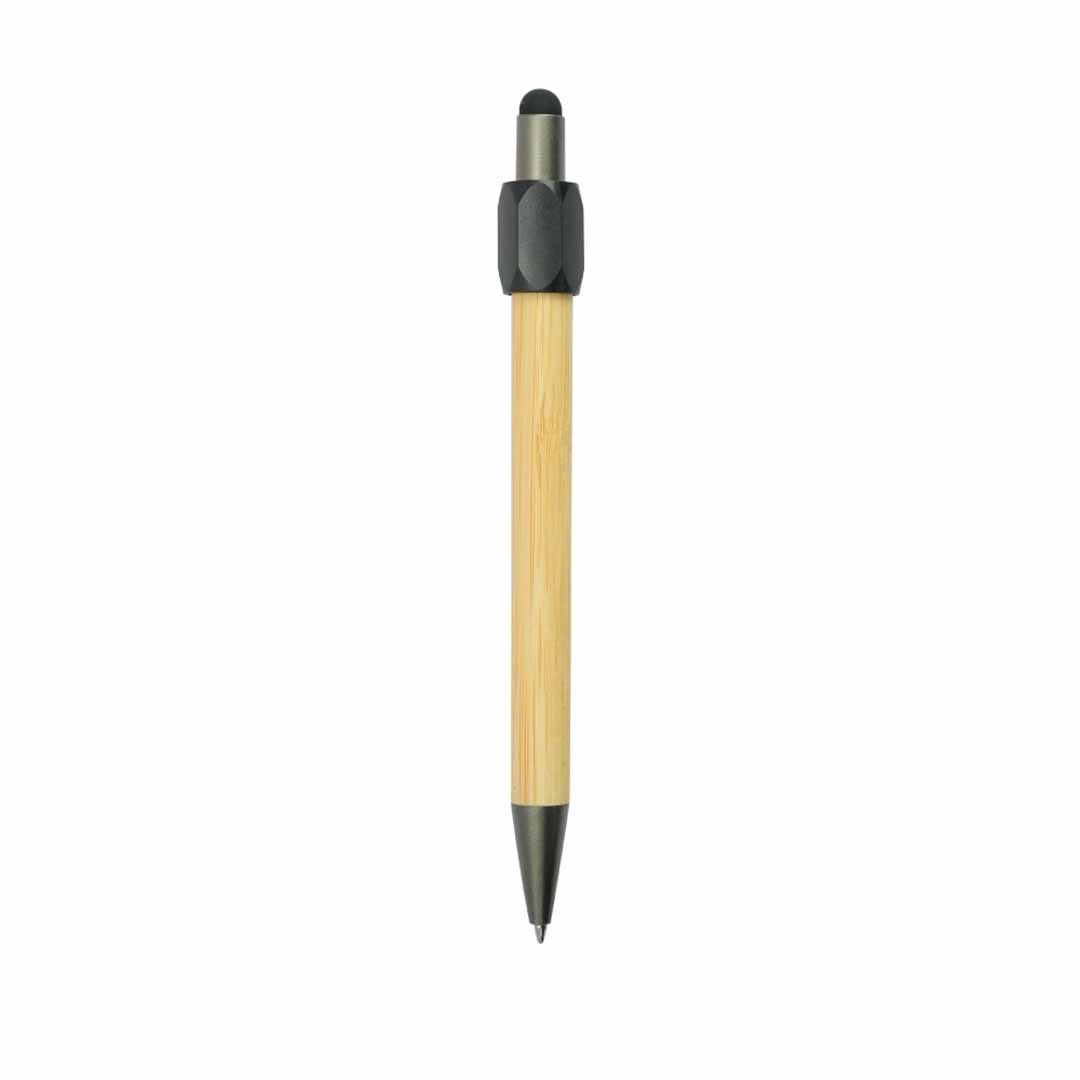 Impact and sustainability, this eco-conscious pen features a smooth bamboo barrel with a refined matte finish for a natural, premium feel. The interactive black spinner adds a satisfying, stress-relieving touch, while the built-in stylus allows effortless navigation on touchscreens. Finished with sleek gunmetal accents and a reliable push-button mechanism, it delivers smooth blue ink performance. Ideal for trade shows, conferences, or corporate gifts, it’s a practical promotional item that keeps your brand top of mind.