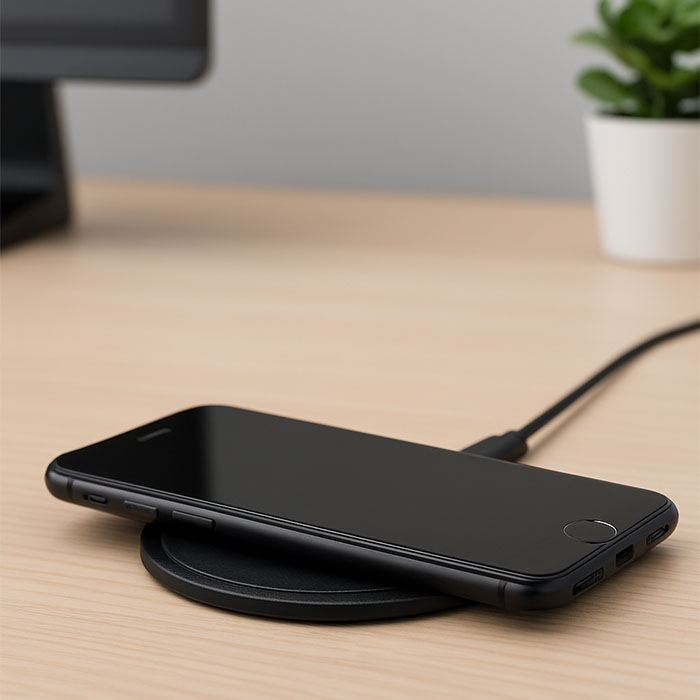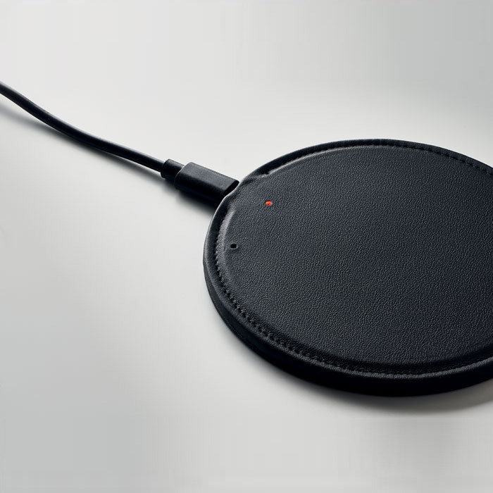 This premium wireless charger, crafted from eco-friendly recycled PU, features a sophisticated design with 58% recycled materials (40% recycled polyester and 18% recycled PU). It offers a quick charging output of DC 9V/1.67A (15W) and is compatible with all QI-enabled devices, including the latest Androids, iPhone® 8, X, and newer models. This environmentally conscious charger combines high performance with a refined, sustainable finish.