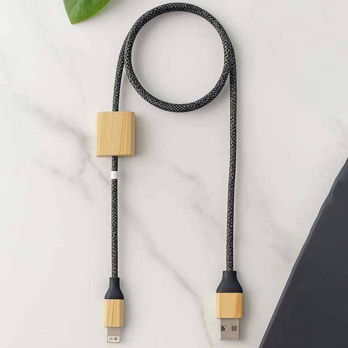 Charge sustainably with this 60W eco-friendly cable made from RPET and stylish bamboo accents. Designed for versatility, it features a 2-in-1 input (Type-C and Type-A) and dual output options (Type-C and 2-in-1 pin), making it compatible with a wide range of devices. Whether at home or on the go, this durable and tangle-resistant cable delivers fast, reliable power while reducing environmental impact—perfect for the conscious tech user who won’t compromise on performance or style.