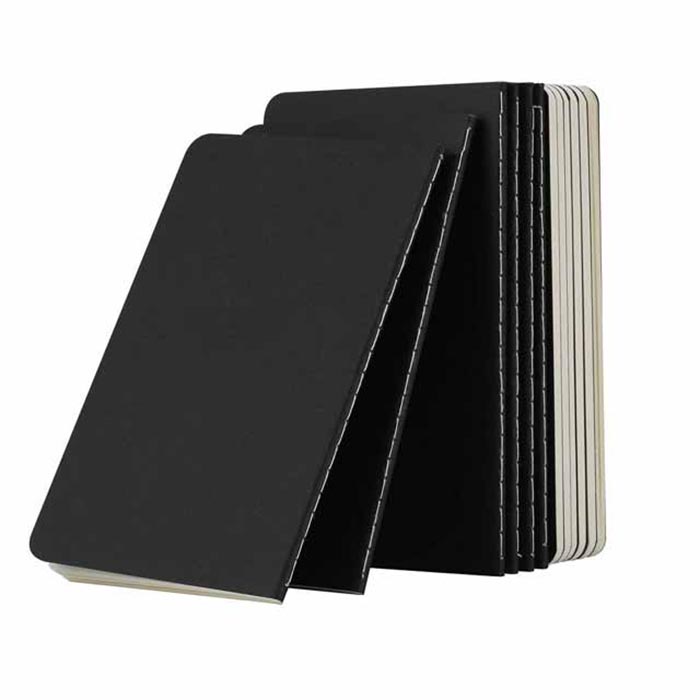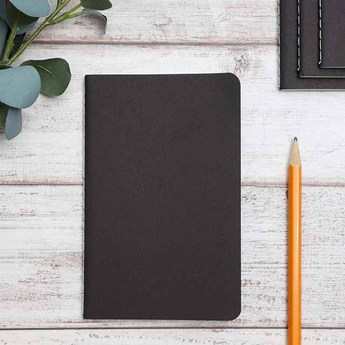 Basic 80 pages slim notebook (40 sheets) with cardboard cover, stitched seams and ruled pages on the inside. Ideal for mass promotional giveaways