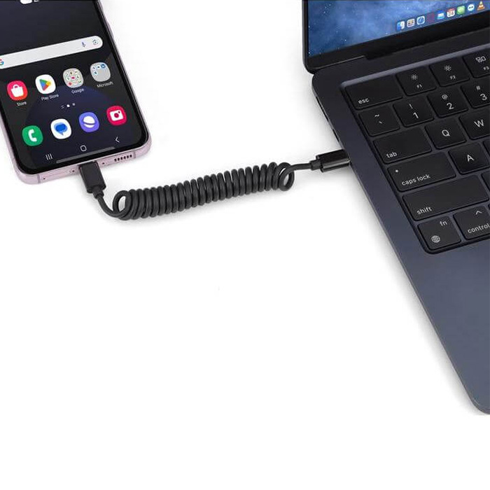 Versatile all-in-one charging and data cable delivers up to 60W fast charging, making it ideal for smartphones, tablets, and even laptops. Its compact, spiral design extends up to 85 cm for convenient reach while remaining tangle-free and portable. Compatible with Type-C, USB-A, Micro USB, and Lightning devices, it ensures seamless connectivity across all your gadgets. Durable and travel-friendly, this cable simplifies charging and data transfer, keeping all your devices powered efficiently wherever you go.