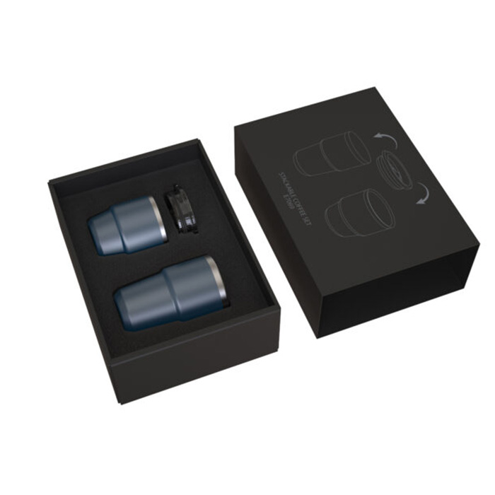 Enjoy your favourite drinks with this eco-friendly stainless steel mug set, crafted from recycled materials for sustainability. Designed for versatility, it includes two mugs (180ml and 240ml) with a durable 304 SS interior and 201 SS exterior. A single lid fits both mugs, preventing spills, while the stackable design saves space. Perfect for home or travel, this set comes in a stylish black kraft box—an excellent gift for any occasion. Practical, durable, and environmentally conscious!