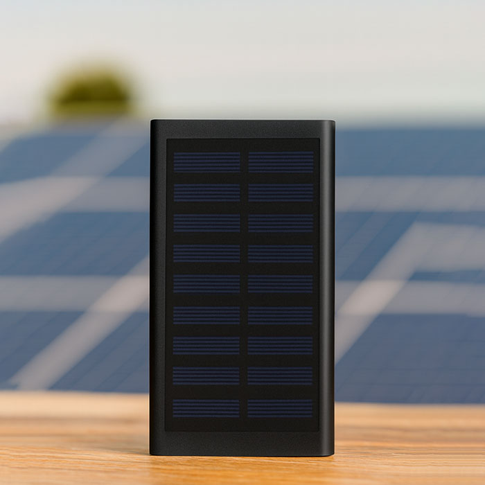 This sustainable power bank boasts an 8000 mAh capacity and features a durable aluminum casing and an integrated solar panel. It is ideal for smartphone use, offering output currents of DC5V/1A and DC5V/2A. The power bank includes an indicating light and a USB cable with a micro USB plug, making it a practical and eco-friendly charging solution.