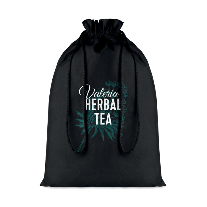 Large gift cotton draw cord bag. Size approx. 30 x 47cm. 105 gr/m². Produced under a certified standard for the use of harmful substances in textile.