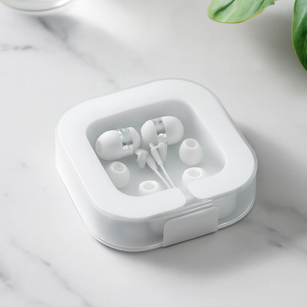 Introducing silicone-covered earphones designed to enhance sound quality by effectively insulating against external noise. These earphones also double as a phone stand for added convenience. Presented in a plastic box, they come with a 120 cm cable neatly stored inside. Additionally, three spare silicone covers in different sizes are included for a personalized fit. Featuring a Type-C connector, these earphones offer versatility and modern connectivity.