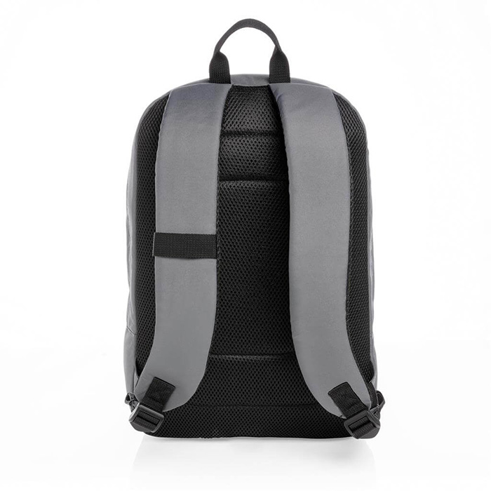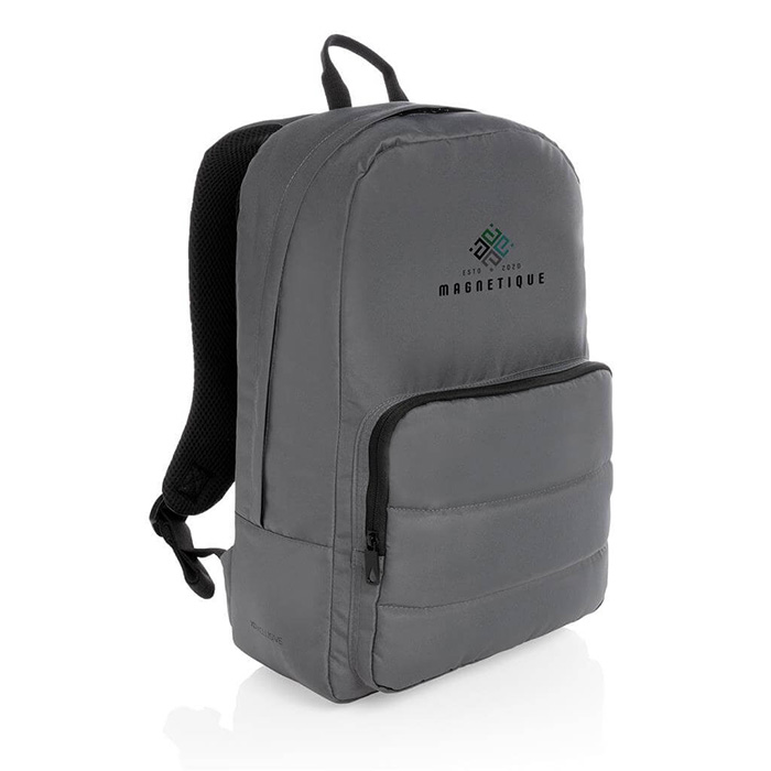 Made with AWARE™ tracer this bag uses genuine recycled fabric materials and water reduction techniques that are tracked by the AWARE disruptive physical tracer and blockchain technology. Save water and use genuine recycled fabrics. This bag saves 19 litres of water and 33 plastic bottles have been reused. 2% of proceeds are donated to Water.org. This 15.6″ laptop backpack includes a laptop sleeve in the main compartment and an inside sleeve pocket. Interior and exterior 100% recycled polyester with AWARE™ tracer . PVC free.