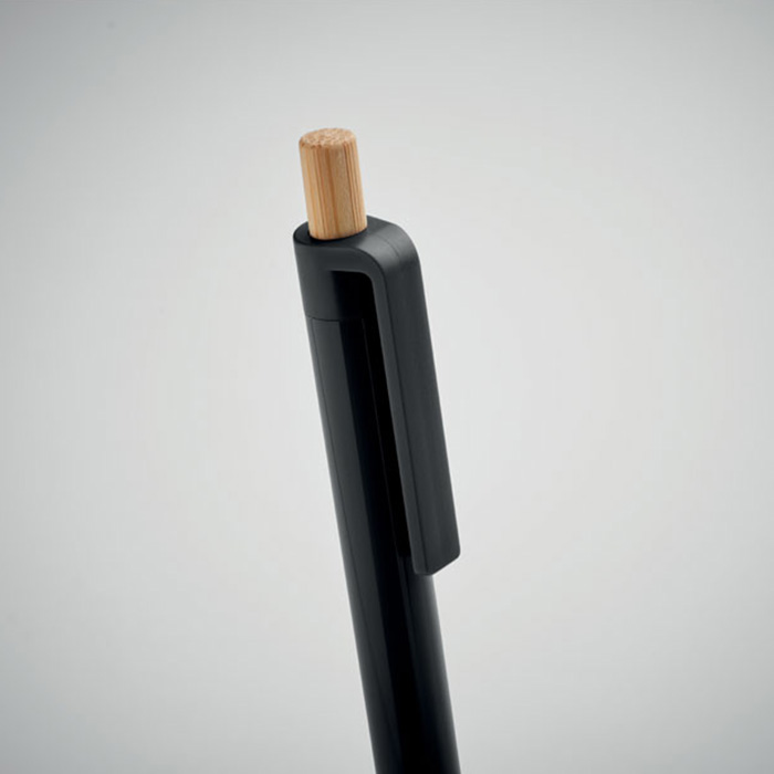 Elevate your writing experience with this eco-friendly ballpoint pen. Crafted from recycled ABS plastic and featuring a sleek bamboo push button, it blends sustainability with style. Designed for comfort and durability, its smooth blue ink ensures effortless writing every time. Whether at work, school, or on the go, this pen is a responsible choice for those who care about the planet. Perfect for everyday use or as a thoughtful gift for environmentally conscious individuals.
