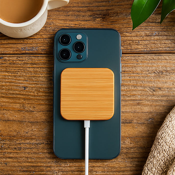 Experience lightning-fast wireless charging with Unico, a 15W Magnetic Wireless Charger encased in sustainable bamboo. Designed with Magsafe compatibility, it securely attaches to iPhone 12 model for effortless and efficient charging. Also compatible with all other Qi-enabled devices, including iPhone 8 and above, Samsung S7 and newer. Compact in size and easy to transport, this article is an ideal addition to your event giveaway lineup. Bamboo is a natural product and there may be slight variations in colour and size per item, which can affect the final decoration outcome.